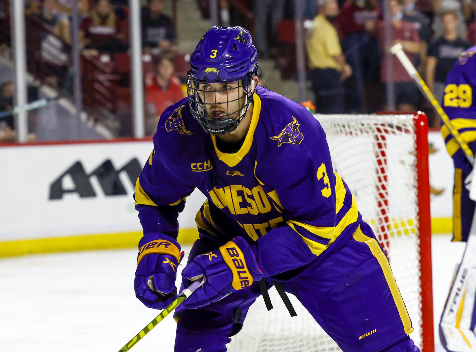 2021-22 Minnesota State Mavericks Men's Ice Hockey Roster Choose a Player: Aamodt, Wyatt Bellini, Steven Borchardt, Cade Carroll, Andrew Edwards, Tanner Furry, Brendan Gregga, Connor Groll, Josh Hillman, Will Hirose, Akito Krajnik, Zach Livingstone, Jake Lutz, Reggie Maass (WSH), Benton Malinowski, Tony McKay, Dryden McNeely, Jack Miller, Andrew Morton, Sam Napravnik, Julian Olson, Brenden Pavel, Ondrej Rancier, Keenan Sandelin, Ryan Silye, David Smith (ARI), Nathan Sowder, Lucas Zmolek, Bennett Go Matt Dewkett/Minnesota State Athletics Matt Dewkett/Minnesota State Athletics Pause 3 Jack McNeely Class Senior DOB 12/18/96 Position D S/C R Height 6-3 Hometown Lakeville, MN Weight 187 Last Team Tri-City (USHL) Bio Biography As a Maverick: Four-year letterwinner (2017-18, 2018-19, 2019-20, 2020-21)...Served as an alternate captain in 2020-21. 2020-21: Registered 1-5--6 in 27 games played on the season...+12 (t-fifth), with 41 blocked shots (second on team) and 37 shots on goal...2020-21 WCHA All-Academic. 2019-20: Had 4-9--13 with and saw action in all 38 games as a junior...Tied for second on the team with +21 rating and ranked third with 41 blocked shots...Assisted on Nathan Smith's overtime game-winning goal in 3-2 WCHA road victory at Bowling Green January 18, 2020...2019-20 WCHA Scholar-Athlete...2019-20 WCHA All-Academic. 2018-19: Notched one goal and six assists for seven points...Saw action in all 42 games...Recorded first career goal on Nov. 16 in helping Minnesota State to 7-1 win over Ferris State...Logged multi-assist game when with two helpers at Alaska Fairbanks (Feb. 1)...Blocked 36 shots in his second season as a Maverick...Led Mavericks with +27 (ranked seventh in the nation)...2018-19 WCHA Scholar-Athlete...2018-19 WCHA All-Academic. 2017-18: Had 0-6--6 in 23 games played in first season of college hockey...Finished with +8 rating and 16 shots on goal...Registered two assists in 7-0 win at Lake Superior State Dec. 9, 2017. THE McNEELY FILE: Team captain for Tri-City of the United States Hockey League where he had 0-1--1 in 11 games played with the Storm prior to be traded to Muskegon (1-10--11 in 38 GP) in 2016-17...Won Clark Cup in helping Tri-City capture USHL postseason title in 2015-16 where he had 0-2--2 in 11 regular-season games with the Storm...Lakeville North (Minn.) High School product where he had 1-20--21 in 25 games in 2014-15...Selected to play in the Upper Midwest HS Elite League where he totalled 1-9--10 in 42 games with Team Southwest.