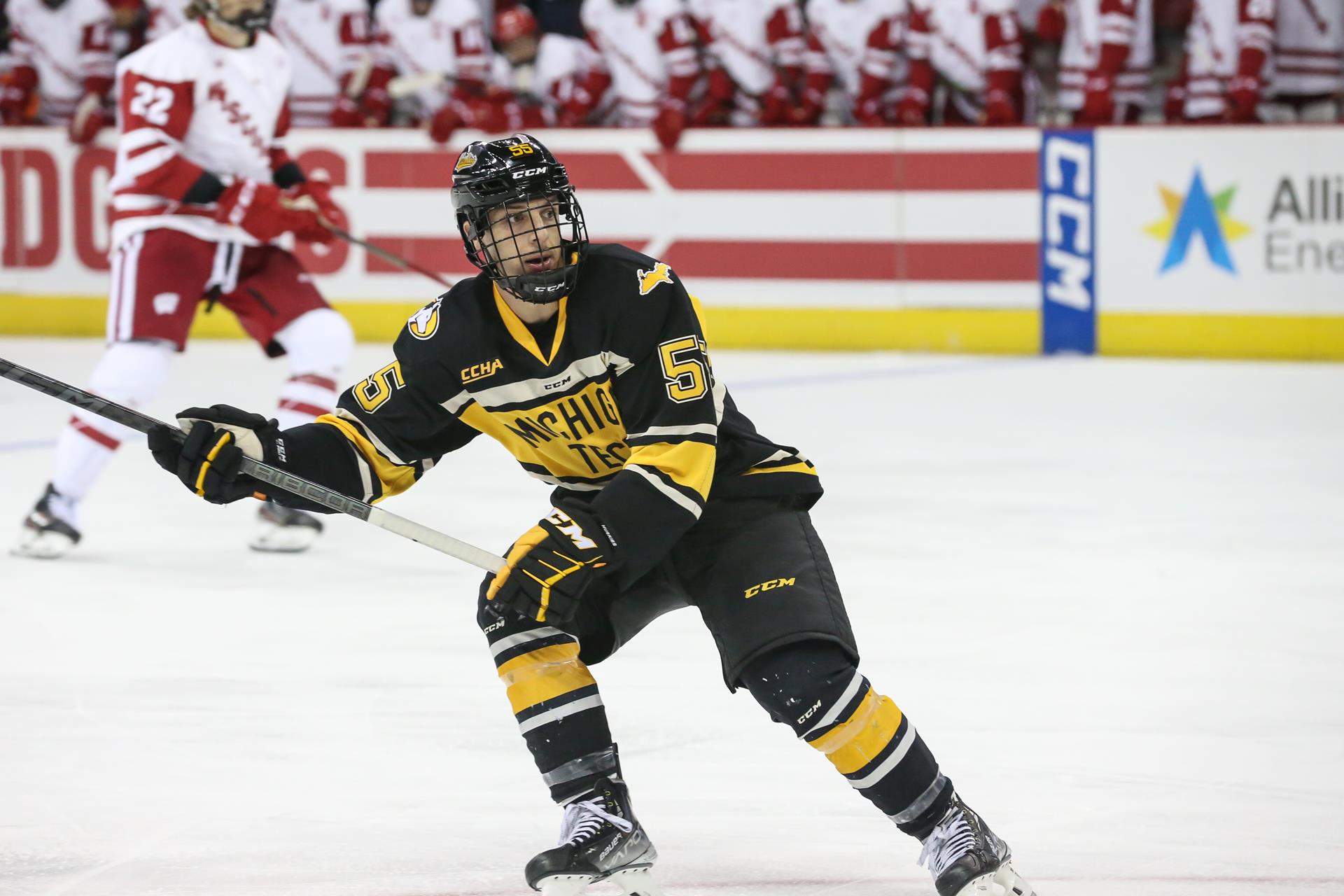 2022-23 Michigan Tech Men's Hockey Roster Choose a Player: Ashbrook, Tristan Bezick, Oliver Bronte, Tyrone Bronte, Tyrone Caderoth, Arvid Crespi, Jake Dovorany, Frank Ganie, Logan Heiskanen, Topi Jankowski, David Kukkonen, Kyle Kukkonen, Trevor Lipe, Chris Mosley, Ryland Nardella, Nick Nordstrom, Alex O'Connell, Ryan Orr, Evan Pedersen, Marcus Pietila, Blake Pietila, Jed Pietila, Logan Rasmussen, Kash Richartz, Blais Russell, Trevor Saretsky, Parker Stauber, Levi Thorne, Brett Vaharautio, Kasper Vayrynen, Max Works, Jack Go Pause 55 Tyrone Bronte Class Junior Position F S/C R Height 5-10 Hometown Melbourne, Australia Weight 165 Last Team Alabama Huntsville Bio Historical Biography Pronunciation Prior to Michigan Tech: Played the 2020-21 season for Alabama Huntsville … Was named to the WCHA All-Rookie Team after tallying 13 points on four goals and nine assists in 22 games… Was named the WCHA Rookie of the Month for November and three-time WCHA Rookie of the Week … Led the Chargers in points and assists and scored three power-play goals … Played three seasons and 155 games in the NAHL for the Wilkes-Barre/Scranton Knights … Tallied 116 NAHL points with 41 goals and 75 assists … As captain in 2019-20 had 48 points (12 goals, 36 assists) in 46 games … Had 33 points in 54 games in 2018-19 and 35 points in 55 games during the 2017-18 season … Played three games with the Omaha Lancers of the USHL in 2017-18 … Member of the Australia U18 Team in 2016-17. Personal: Shoots right … Enjoys skiing, playing tennis, and Australian football … Son of Paul and Fiona … Has a younger brother, Declan … Born Tyrone Heath Bronte on May 7, 1999, in Melbourne, Australia … Graduated from Grand Ledge High School … Played pickleball in high school … Majoring in Business Management. Historical Player Information 55 2021-22Sophomore F 5'10" 165 lbs 55 55 2022-23Junior F 5'10" 165 lbs 55